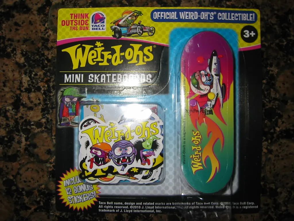 No they are not. What Taco Bell gave away in 2010 with Kid's Meals was four different Weird-Ohs skateboards each of which came with twelve different Weird-Ohs stickers: