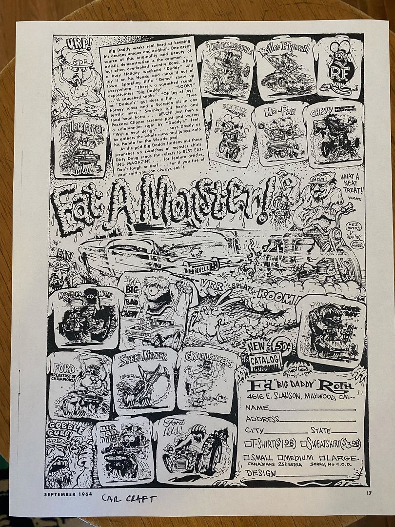 Quote from: Hepcat on March 24, 2023, 11:03:14 PMHere's a picture I lifted off the net of two more of these Revell Ed "Big Daddy" Roth Iron-On Transfers: