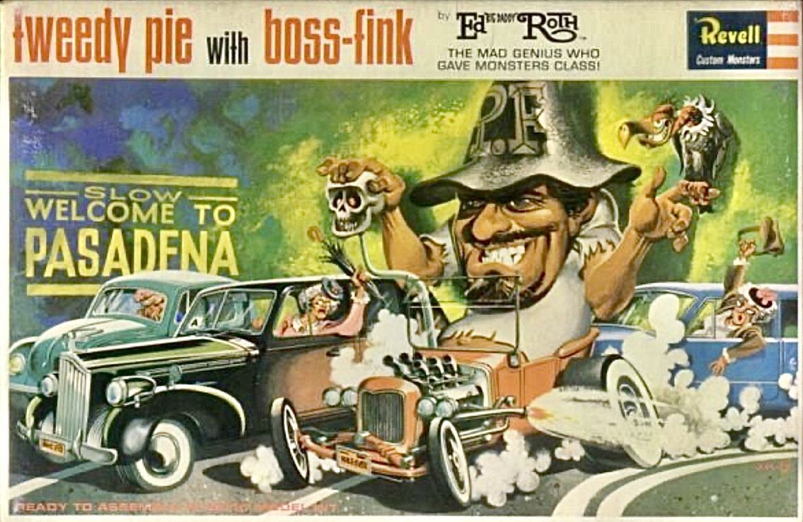 It's interesting that Revell released no more "Big Daddy" Roth kits after 1965. Part of the reason is that the whole Fink/Weird-Oh phenomenon had run its course. "Big Daddy" Roth's own T-shirt designs had by the late sixties evolved away from finks and more toward featuring a specific make and model of a car.