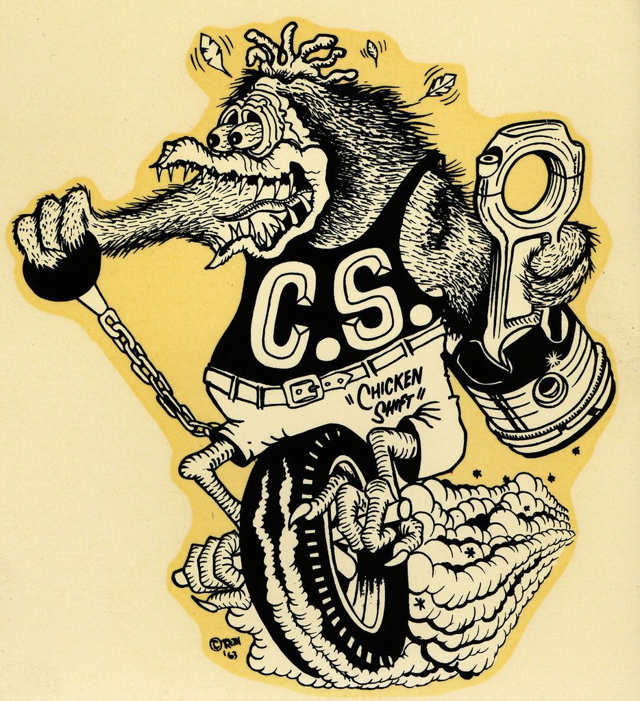 Quote from: Hepcat on April 01, 2023, 11:01:48 PMWes Bennett had at some point in late 1963 or early 1964 tweaked the Mother's Slave design to instead feature a Rat Fink-type character on a motorbike: