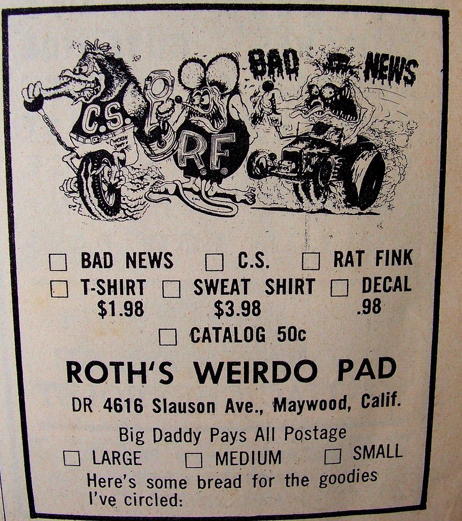 Quote from: Hepcat on July 30, 2020, 04:04:32 PMEd Newton was then hired by Roth in 1964 both to design show cars and to create magazine ads for Roth's T-shirt line. The first ad designed by Newt was for the August 1964 issue #6 of Drag Cartoons.