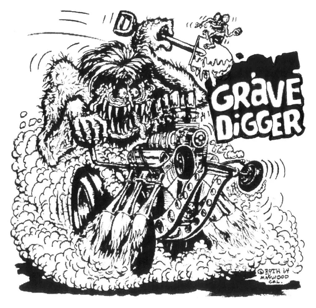 Grave Digger was a Roth design turned into finished line art for T-shirt by Wes Bennett in 1964: