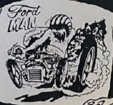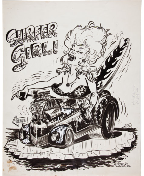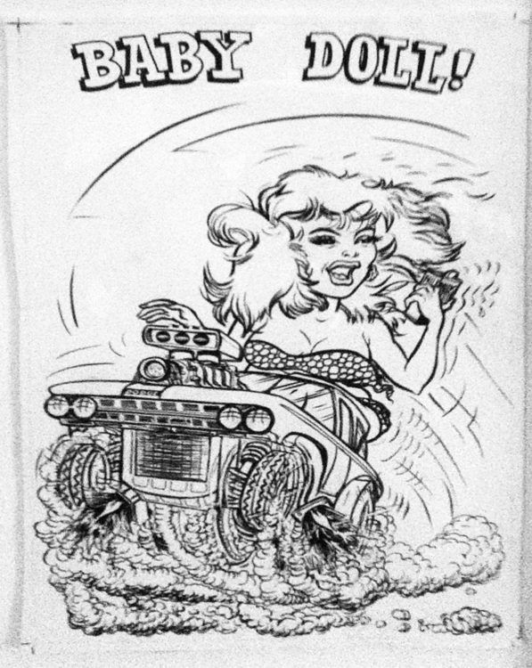 By early 1963 the T-shirts "Big Daddy" Roth was offering through magazine ads featured standardized images applied to the T-shirts by a silk-screening process. Many/most of the designs pictured in the ad below were line art renderings by Carl Kohler who together with Pete Millar had founded CARtoons magazine in 1959. These early finished renderings for silk-screening purposes seem quite crude by later standards: