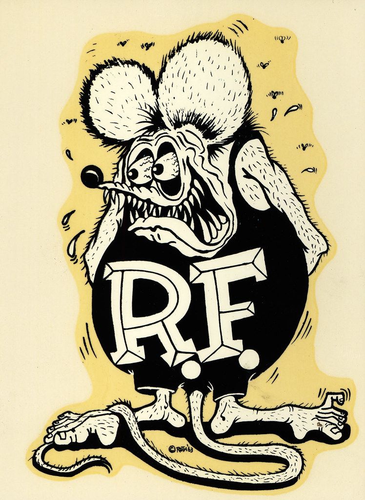 The original Rat Fink image may well have been drawn by Carl Kohler before he was supplanted by Wes Bennett as Roth's go-to artist some time in 1963. Here it is with coloured pencils applied by our own Weldonmc: