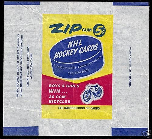 The best bubble gum available when I was in grade school was the gum that came with the Zip Hockey cards made by Parkhurst. It was thick, juicy, and flavourful with a hint of cherry, and far superior to the thin slab of Bazooka that came with Topps/OPC trading cards.