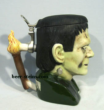 The wife and I took a much-needed weekend trip to the beach and I found this animated Frankenstein in a Christmas shop.  He was in a Halloween display and marked at $220.  After turning on the GAKENSTEIN charm, I cadged him for $100 -- and the sales lady threw in a Franky head mercury glass ornament for free!  He's musical and dances.  I think I'll dye his clothes black for a more accurate look.