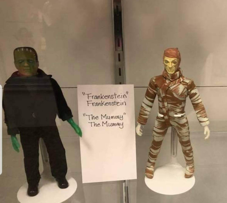 So far, my toy museum haul has been the 12 inch Hasbro Son of Dracula and Invisible man, the two 8 inch MASH dolls Hawkeye and Hotlips, and the AHI Frank and Mego Mummy. I will be looking at the rest of the haul soon, and May get Oddjob from Goldfinger (Gilbert) figure in box as well.
