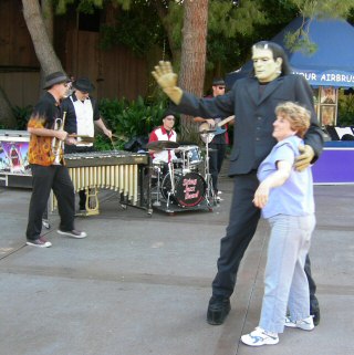 Great idea, Gillfan. I'll have to take my family Frankenstein pics. out and scan them . My daughter was a magnet for the walk around monsters. She always had that "please don't pick me" look, and they zeroed in on her, so we have some pics. from the 90s at Universal Orlando.