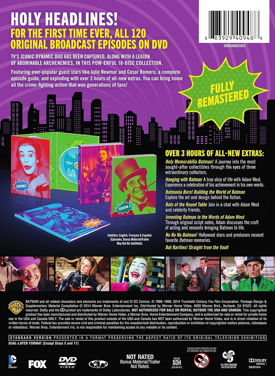 I'll probably never pick this up on dvd but it is great to finally see it's release.  I'll watch an occasional episode when I see it's on mostly for Cesar Romero, Vincent Price, Roddy McDowall, Burgess Meredith, Frank Gorshin, John Astin, Carolyn Jones, Lee Meriwether, Julie Newmar and Yvonne Craig.