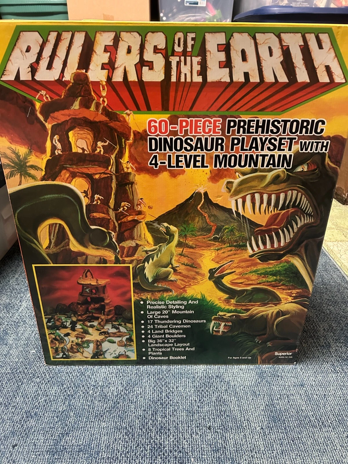 It's pricey at $1K OBO but I think the seller is on point with this pricing. Superior mountain sets are fairly scarce in the marketplace. I've never seen a box for it in this nice a condition. It looks like someone walked into store back in 1987 and bought this storing it away safely until now. I have over two dozen dinosaur playsets and my Superior Mountain Set is the only one that doesn't have the original box. Superior made Marx recasts in swirled colors, and they are uncommon and sell for much more than original common types of Marx dinos now. The cardboard boxes for the Superior sets is very thin which is problematic for the large mountain set. Very few of the mountain set boxes remain at all and the few still around are mostly in poor condition.
