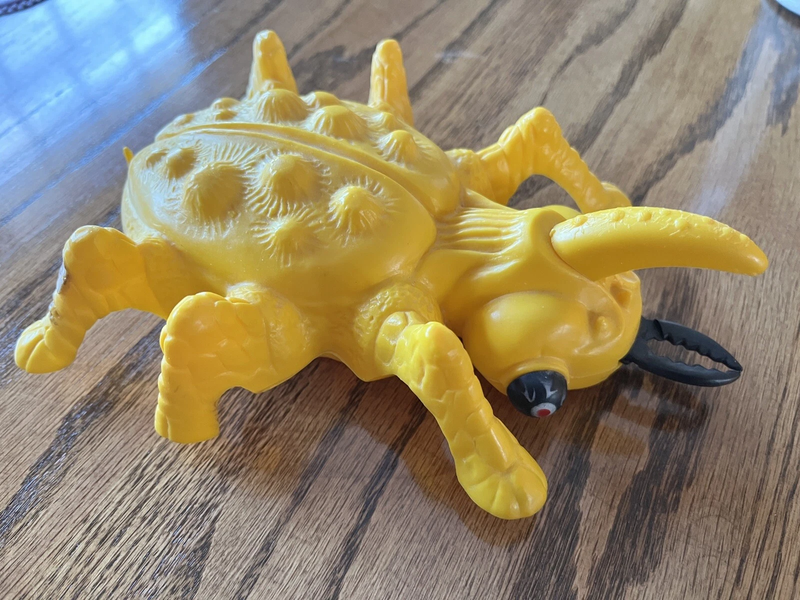 This Remco "Sea Monster" repurposed Hamilton's Invaders Beetle sold for $155+ total (w/sh & tax). It has the horn which is often missing but has a couple of melt marks on one leg. These were unpainted and did away with the pull-string "crawling" action but kept the wheels underneath. I bid but wasn't even close to what it went for. These are probably scarcer than the HI Beetles which explains the ending price somewhat. Also, the seller charged cheap shipping which always frees up bidders to bid more.