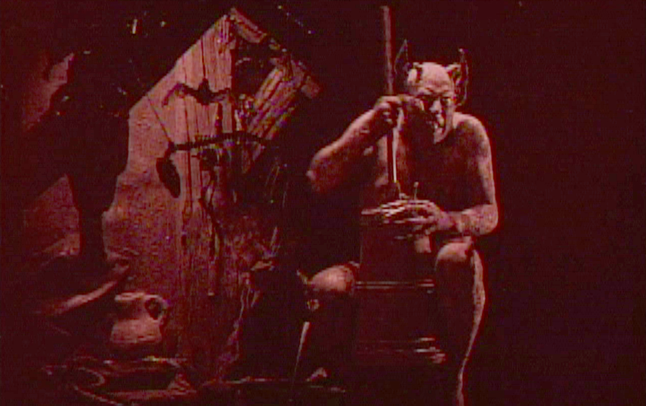 The leader of the Satanic cult atop his throne..