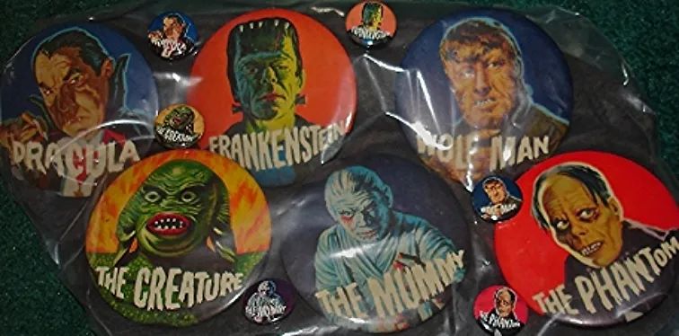 Here's a good picture of Monster Bob's Elwar Universal Monster button collection: