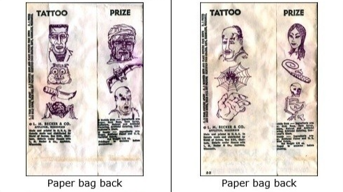 It appears that the same tattoos were also on the backs of the Funny Monsters grab bags: