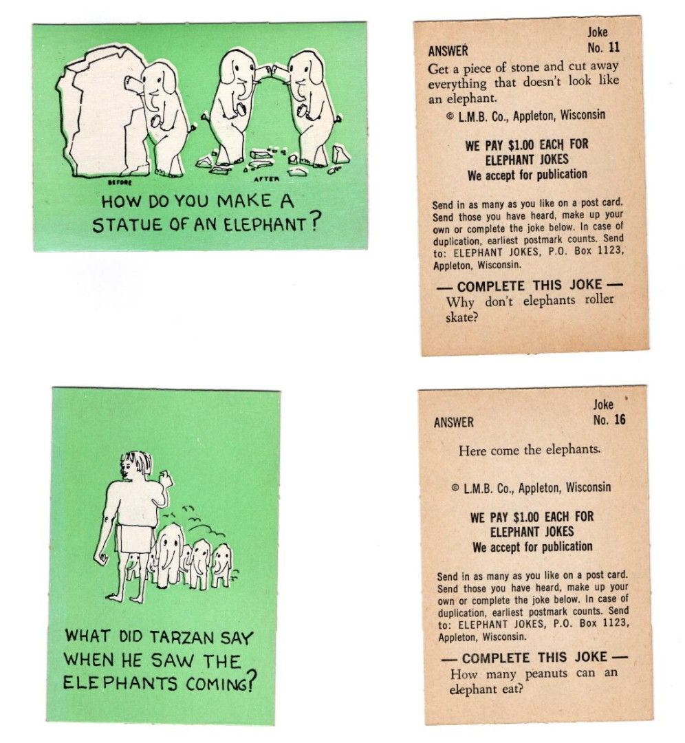 A large part of Becker's business was similar grab bags with various themes. Lonnie Cummins has catalogued many of these grab bag issues including Willie Whistle's Bubble Gum Surprise (1950's), Grab Bag Surprises (1960's), Elephant Jokes (1962), Funny Monsters (1960's), Spooky Surprise (1960's), Wild West (1960's), Combat (1967), Make Your Own Silly Signs (1972) and Baseball (1972) plus cards for Football, Funny Animals, Secret Agent, Space Age, Christmas Puzzles, Military and 3D Circus Stand Ups which may have been issued as part of their own series of grab bags or simply a component part of another issue such as Grab Bag Surprises. Here are some pictures: