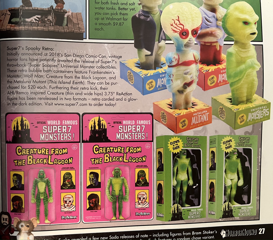 This is interesting. The latest issue of HorrorHound magazine was delivered to me today and it has this write up on S7's monster items including the glow in the dark boxed versions of the AHI tribute Creature figures. To my knowledge this is the first actual announcement of them. Anyone know any different?