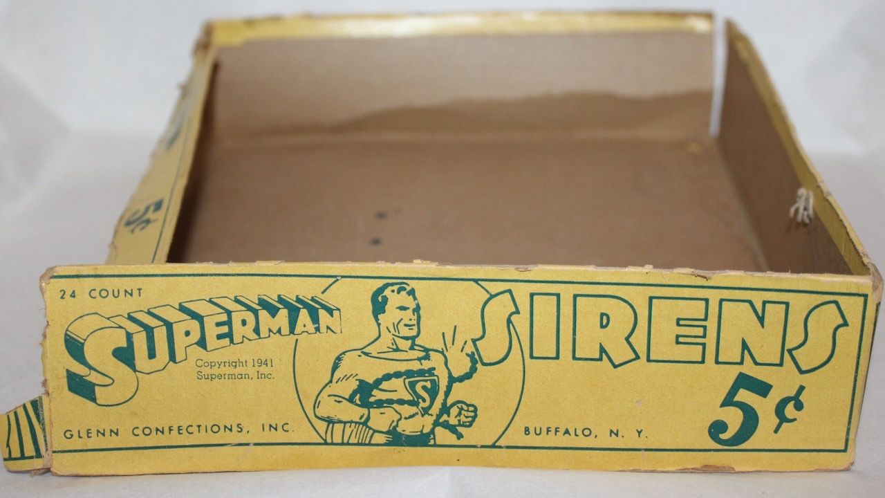 It appears that Glenn Confections has been producing those harmonica shaped Wax Whistles in some format for decades. Here's a box from 1941-42 for Superman Whistles: