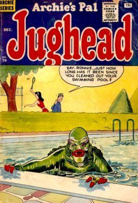 As to the Jughead comic, I would agree that it is the scarcer of the two, and I do like the style & novelty of the cover illustration. However, personally, I would NEVER in a million years consider trading my copy for # 79, even one in mint condition. Granted, I don't care for Archie comics in the slightest; but honestly, apart from the cover, what else about this issue is worthwhile to a Universal Monsters fan or horror comic collector? Sorry, for me anyway, Jughead is just lipstick on a pig while Dell is the whole enchilada.  :) :) :)