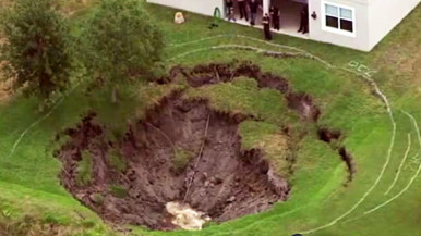 Officials say the sinkhole opened up Thursday morning, just feet away from the sliding glass door at the rear of a home in Windermere, an Orlando suburb.